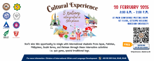 20 กุมภาพันธ์นี้ ขอเชิญชวนนิสิต บุคลากร และผู้สนใจ เข้าร่วมกิจกรรม “Internationalization at Home” ร่วมสนุกแลกเปลี่ยนวัฒนธรรมกับคณะนิสิตแลกเปลี่ยนชาวต่างชาติ 27 ราย จากมหาวิทยาลัยในต่างประเทศทั้ง 7 แห่ง
