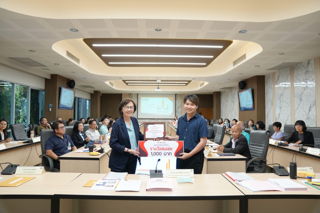 เมื่อวันที่ 4 กันยายน 2567 ณ ห้องนเรศวร 310 อาคารสำนักงานอธิการบดี ชั้น 3 มหาวิทยาลัยนเรศวร ที่ประชุมคณะกรรมการบริหารมหาวิทยาลัยนเรศวร ครั้งที่ 16/2567 รศ. ดร.ศรินทร์ทิพย์ แทนธานี รักษาราชการแทนอธิการบดีมหาวิทยาลัยนเรศวร ประธานการประชุมฯ ให้เกียรติมอบรางวัลผู้ชนะการประกวดออกแบบตราสัญลักษณ์มิวเซียมนเรศวร จัดการประกวดโดยกองส่งเสริมศิลปวัฒนธรรม จำนวน 5 รางวัล ดังนี้