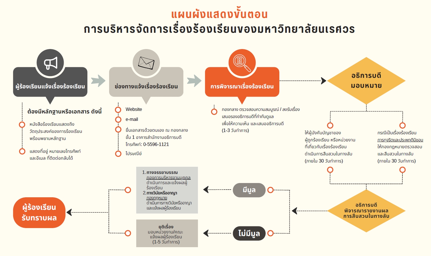 แผนผังแสดงขั้นตอน การบริหารจัดการเรื่องร้องเรียนของมหาวิทยาลัยนเรศวร